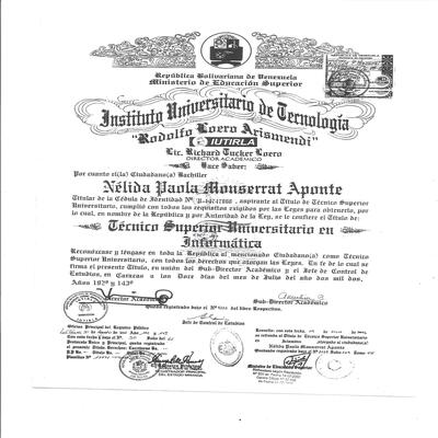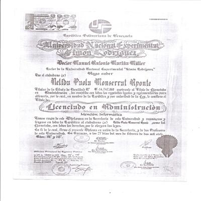 Título o Documento Obtenido: Licenciado en Administración Mención Informática